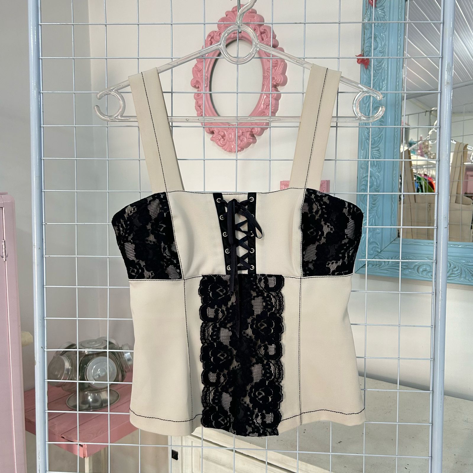 Blusinha bege com renda - P